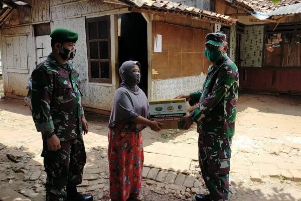Tangerang – Membantu kebutuhan warga anggota Koramil 04/Ciledug Kodim 0506/Tgr mendistribusikan Bantuan Sosial (Bansos) dari Danrem 052/Wkr di wilayah Binaan, Rabu (30/09/2020).