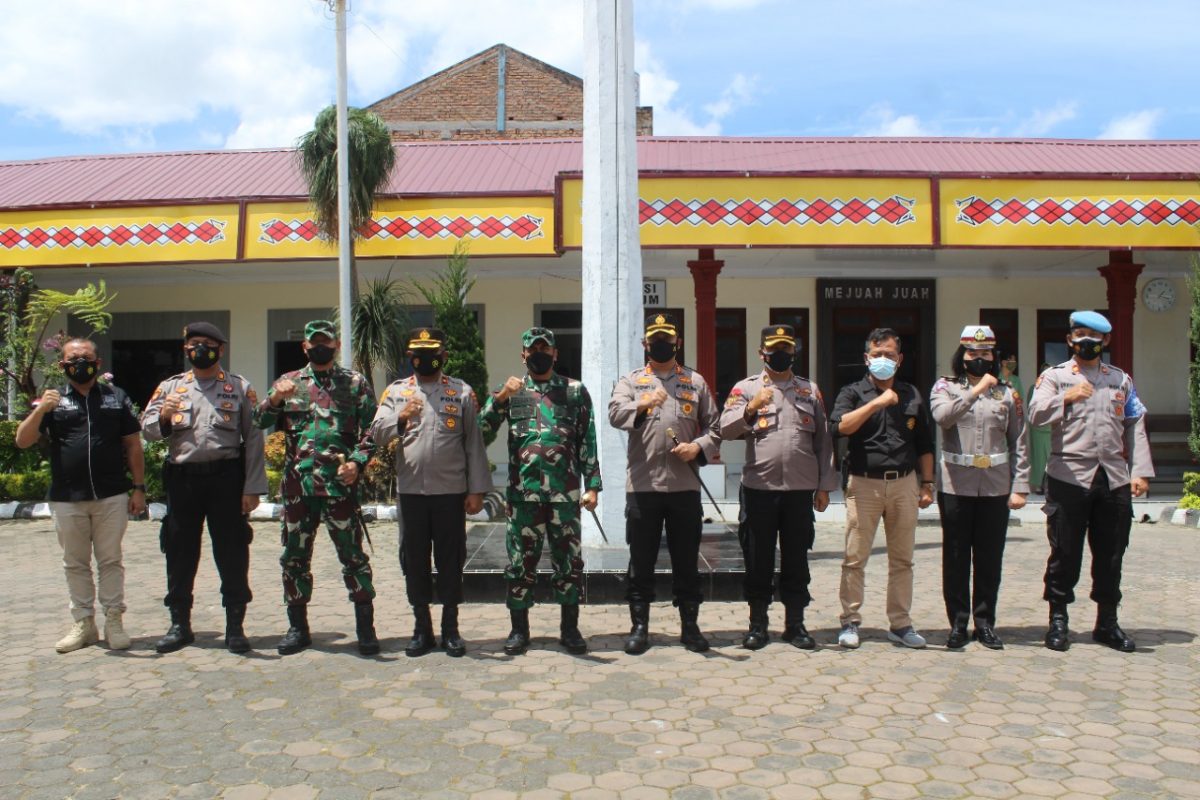 Selanjutnya Komandan Korem 023/KS berserta Dandim 0205/TK selesai memberikan arahan dan motivasi kepada personil Ramil 04/Simpang Empat dan Ramil 05/Payung dan melanjutkan menuju Mapolres Tanah Karo Jl. Veterang Kelurahan Kampung Dalam Kecamatan Kabanjahe Kabupaten Karo, dan setibanya disambut oleh Kapolres AKBP Yustinus Setyo, SH., SIK., Waka Polres Kompol Aron Siahan, Kabagops Polres D. Munte dan Kasat Intel Iptu Narno.