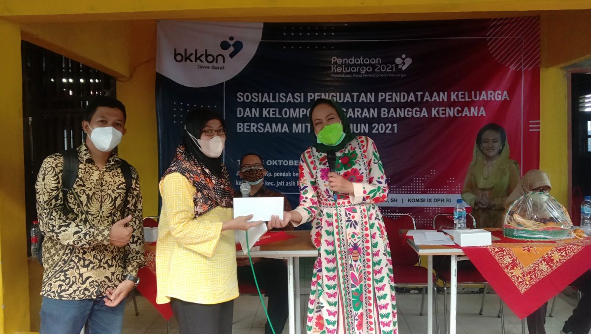 Anggota Komisi IX Dewan Perwakilan Rakyat Republik Indonesia (DPR RI) Dra Hj Wenny Haryanto, SH kembali menggelar Sosialisasi Penguatan Pendataan Keluarga dan Kelompok Sasaran Bangga Kencana (Pembangunan Keluarga, Kependudukan dan Keluarga Berencana) Bersama Mitra tahun 2021. Sosialisasi yang digelar di wilayah Kecamatan Jatiasih, Kota Bekasi, Jumat (15/10), ini bekerjasama dengan Badan Kependudukan dan Keluarga Berencana Nasional (BKKBN).