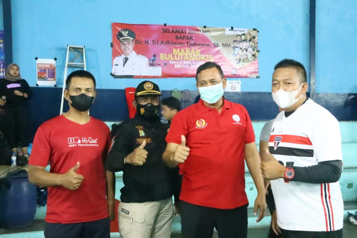 Dalam rangka memperingati hari pahlawan, Tri Adhianto membuka perlombaan bulutangkis ganda putra di Gedung Olahraga Hi_Qua Kelurahan Teluk Pucung Kecamatan Bekasi Utara, Rabu (10/11/2021).