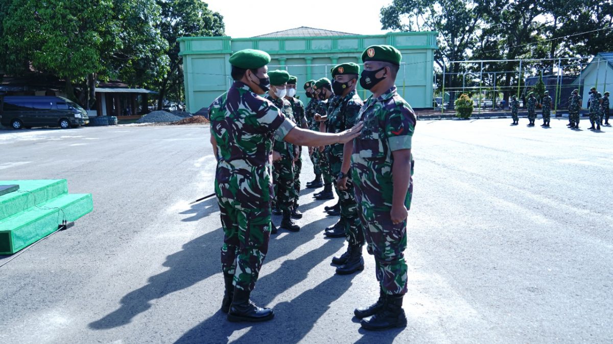 Bengkulu – Komandan Korem (Danrem) 041/Gamas Brigjen TNI Dr. A. Budi Handoyo M. Tr (Han) memimpin pelepasan 7 personel sebagai Aparat Teritorial (Apter) Koramil Persiapan di Wilayah Kodam XVII/Cendrawasih di Lapangan Apel Makorem 041/Gamas, Padang Harapan, Kota Bengkulu, Rabu (1/12/2021).