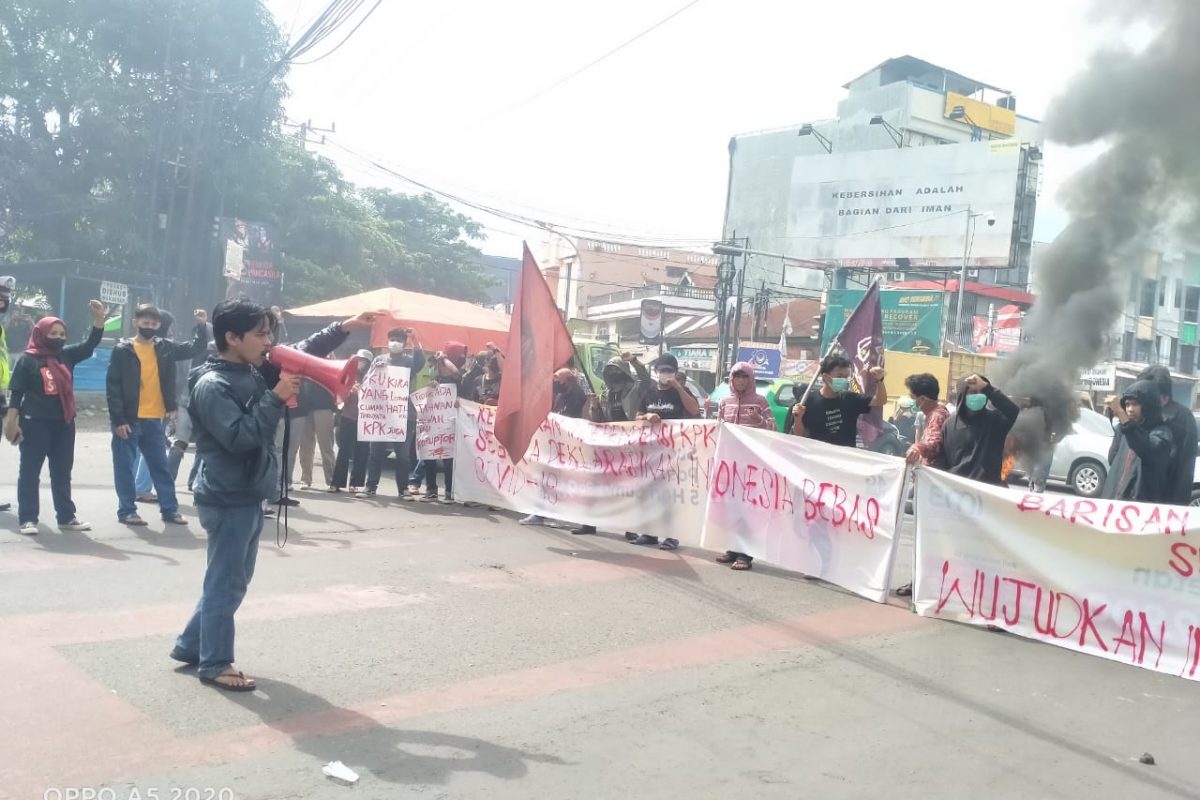 Asfar selaku jendral lapangan menyampaikan orasi ilmiahnya. “Aksi unjuk rasa dalam momentum anti korupsi ini pemerintah terkhususnya presiden Jokowi Dodo harus Segera kembalikan Independensi KPK sebagai lembaga independen serta deklarasikan Indonesia bebas covid-19” dalam orasinya.
