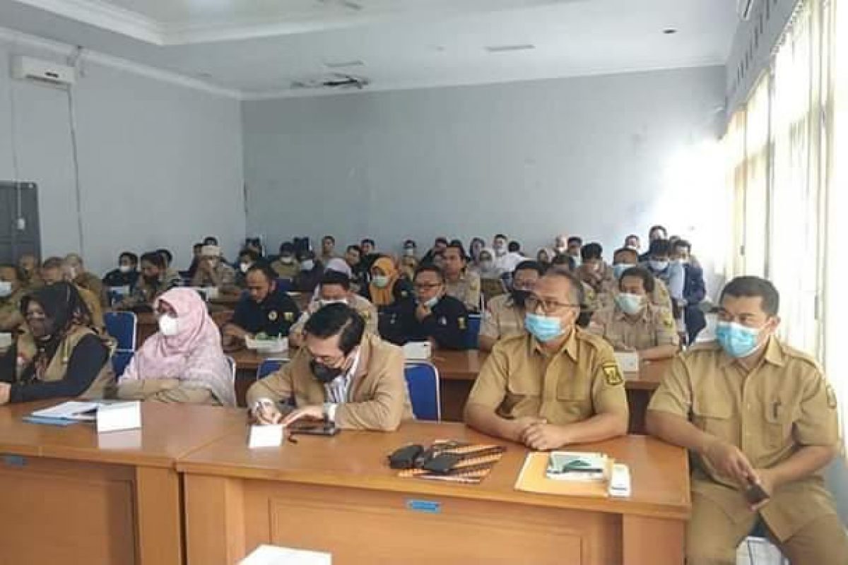 SUKABUMI,MPI- 64 Pendamping Bantuan Sosial Pangan (BSP) mengikuti rapat tim koordinasi program BSP tingkat Kabupaten Sukabumi tahun 2021, di Aula Dinas Sosial Cisaat. Senin (13/12/2021).
