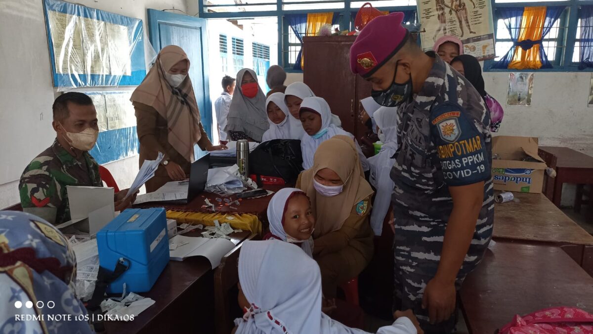 MediaPATRIOT – Tanjung Uban, 10 Januari 2022,– Babinpotmar jajaran Lanal TBA terus mensukseskan vaksinasi program pemerintah bagi pelajar sekolah dasar, seperti yang dilakukan Babinpotmar Posmat Bagan Asahan Sertu Haris mendampingi 55 pelajar SD Desa Asahan Mati vaksin Sinovac di Jalan Besar Bagan Asahan Kecamatan Tanjungbalai Kabupaten Asahan.