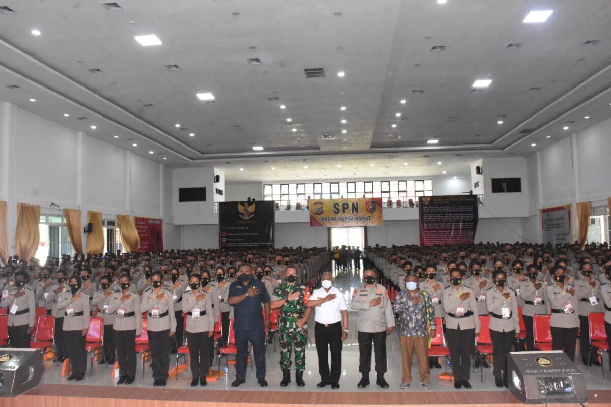 MediaPATRIOT – Manokwari. kasuari18-tniad.mil.id – Pangdam XVIII/Kasuari, Mayjen TNI I Nyoman Cantiasa, S.E., M.Tr.(Han)., memberikan pembekalan pembinaan dan latihan (Binlat) nilai-nilai kebangsaan kepada 1.500 Bintara Afirmasi Otsus Polda Papua Barat TA. 2021, di aula Arfak Convention Hall Polda Papua Barat, Manokwari, Rabu (12/1/2022).
