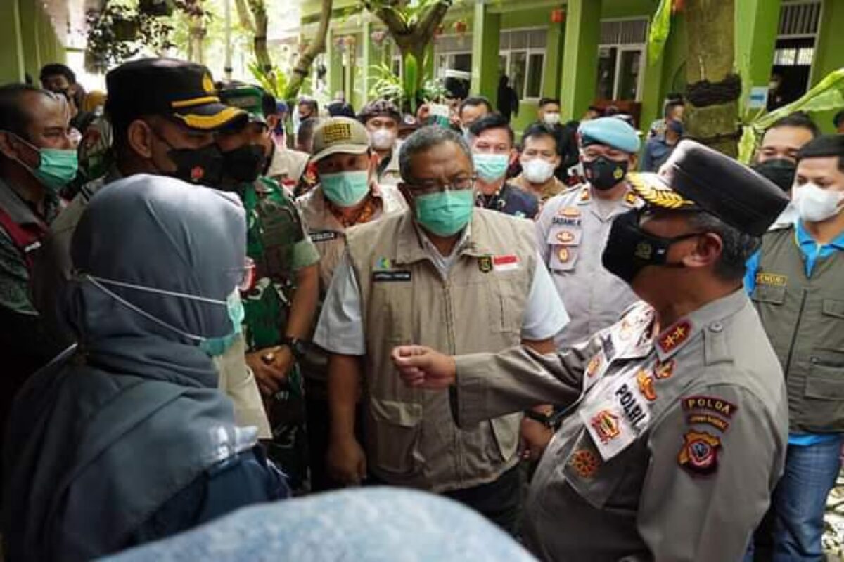SUKABUMI,MPI- Bupati Sukabumi H. Marwan Hamami, sambut Kunjungan Kerja Kapolda Jawa Barat Irjen Pol Drs. Suntana untuk monitoring pelaksanaan vaksinasi covid-19 anak usia 6 sampai 11 tahun. Kegiatan tersebut dilaksanakan di halaman SDIT Insan Cendikia Palabuhanratu,Jumat (14/1/22).