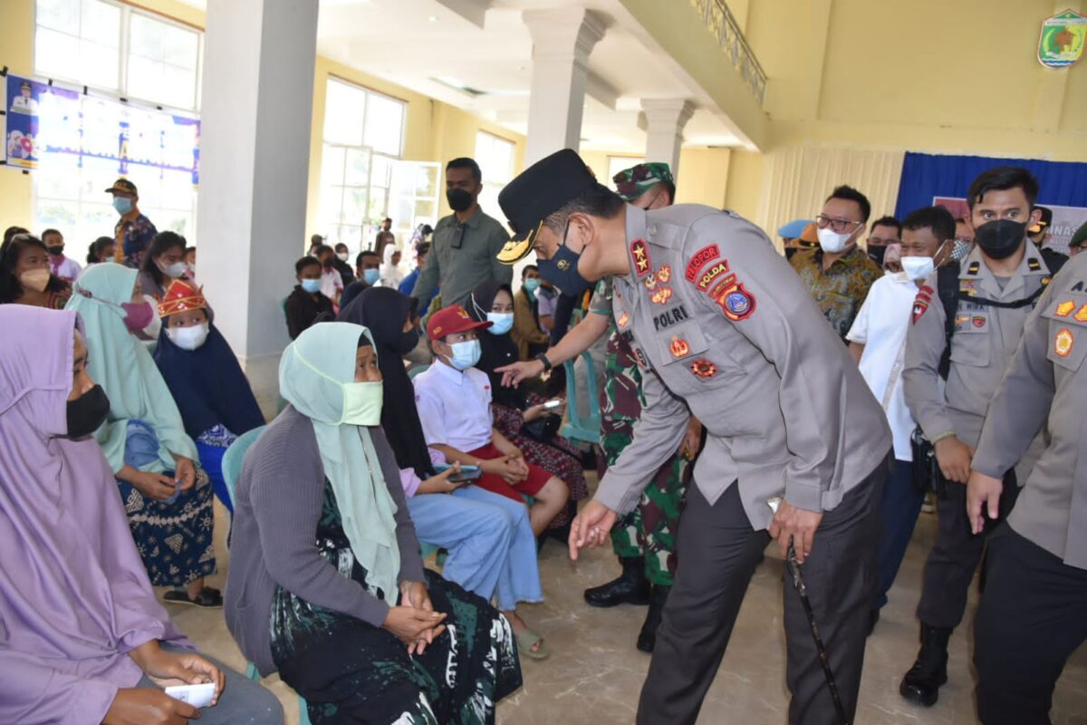 Usai memberikan sambutannya, Kapolda, Gubernur dan Danrem menyempatkan diri menyapa lansia dan anak yang sedang divaksin. Red Irwan