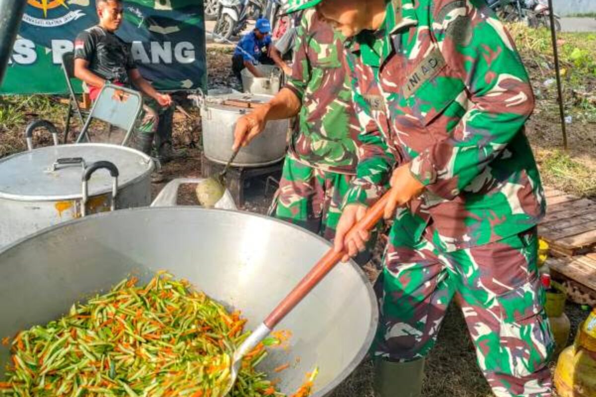 Prajurit Denbekang III-44-04/Serang dari satuan jajaran Korem 064/MY dirikan dapur lapanga untuk memenuhi juga memasak kebutuhan makan bagi