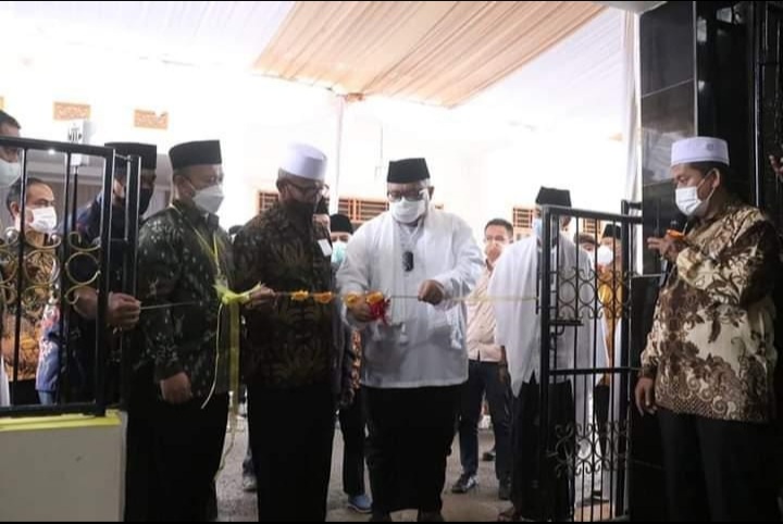 SUKABUMI,MPI- Bupati Sukabumi H. Marwan Hamami meresmikan Masjid Jami Muhibbatul Hasanah di Kampung Cijambe Nyomplong, Desa Sukaresmi, Kecamatan Cisaat, Minggu, 6 Maret 2022. Peresmian ditandai dengan pengguntingan pita dan penandatanganan prasasti.