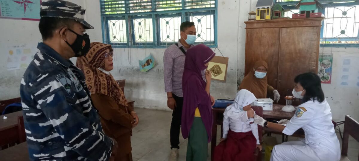 Tidak hanya itu, Babinpotmar Lanal TBA juga terus mendampingi vaksinasi maritim seperti halnya yang dilakukan Babinpotmar wilayah Pagurawan Sertu Wibowo dampingi 40 orang anak sekolah Vaksin Sinovac dosis 2 di SDN 04 Pagurawan Kecamatan Medang Deras.