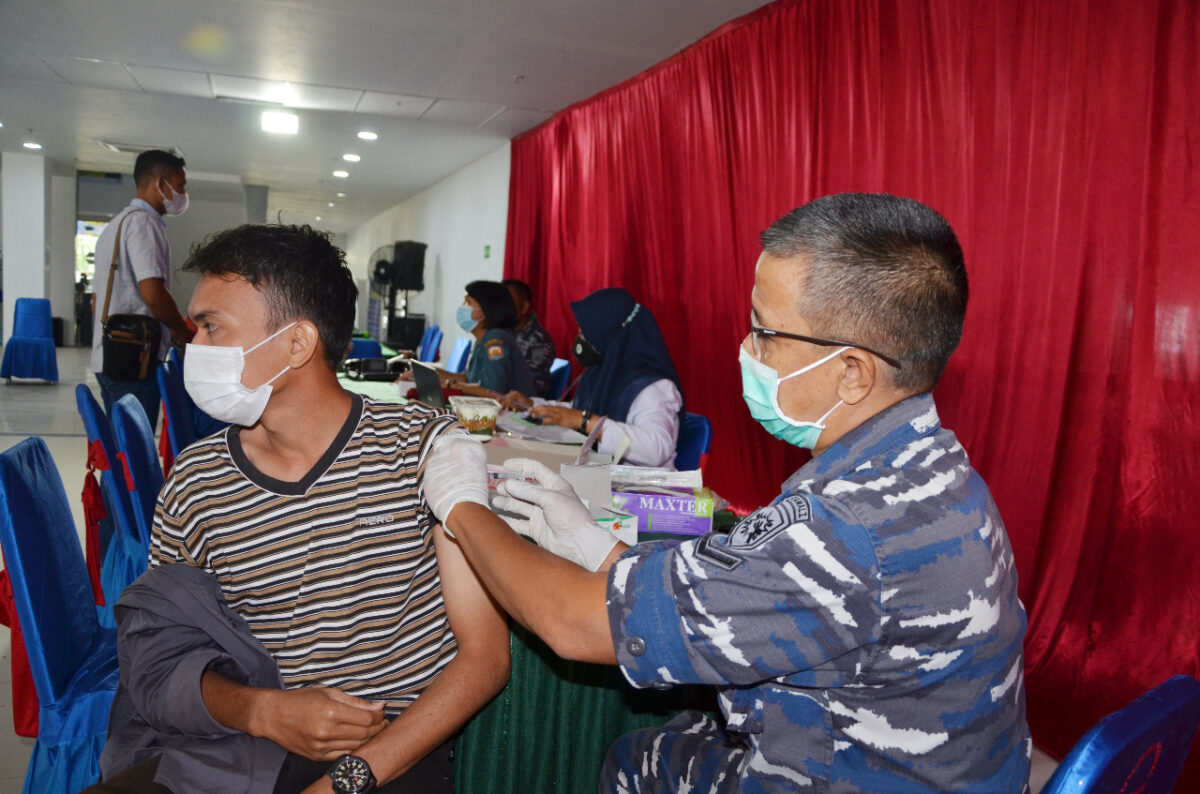 MediaPATRIOT – Dumai,- Dalam rangka mendukung program pemerintah dalam percepatan vaksinasi Covid-19, Pangkalan TNI Angkatan Laut Dumai melaksanakan serbuan vaksinasi booster. Kegiatan dilaksanakan di Mean Office PT. Pertamina RU II Dumai. Kamis (10/03/2022).