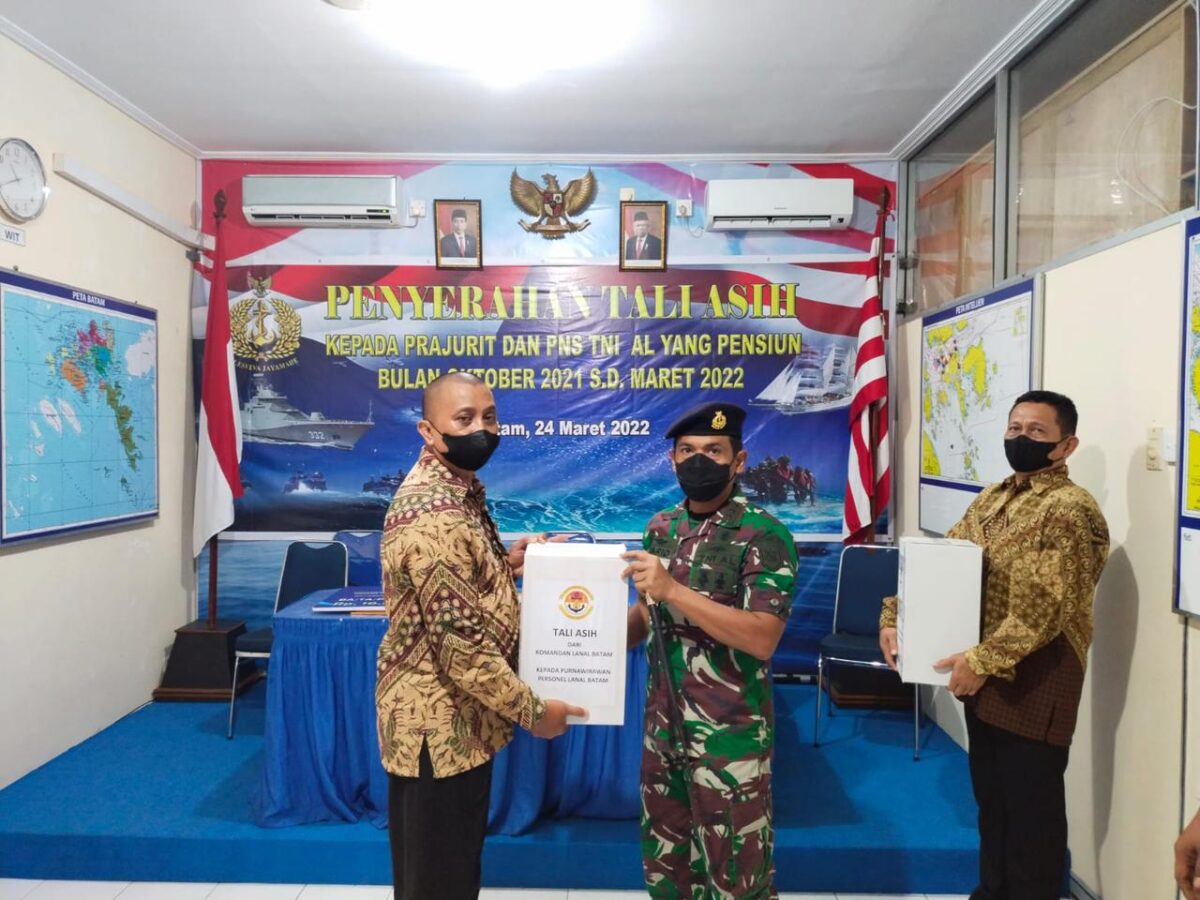 MediaPATRIOT – Batam,- Bertempat di Ruang Kendali Mako Lanal Batam, Komandan Lanal Batam Kolonel Laut (KH) Farid Maruf, S.H., M.H., didampingi Pasminlog Lanal Batam Mayor Laut (T) Agung Wijayanto, A.Md., Ka. Akun Lanal Batam Mayor Laut (S) Andi Arwin, dan Kasipers Lanal Batam Penda TK.I III/B Setyo Edi mengikuti acara Pemberian Tali Asih kepada Purnawirawan Prajurit dan PNS TNI AL yang pensiun pada bulan Oktober 2021 s.d. Maret 2022 melalui vidcon, Kamis (24/03/2022).