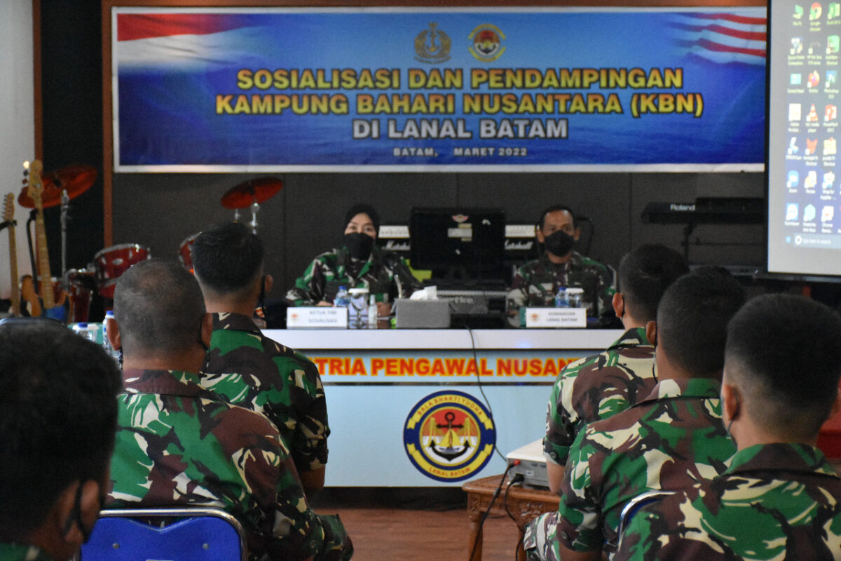 Acara tersebut diawali dengan sambutan Danlanal Batam Kolonel Laut (KH) Farid Maruf, S.H., M.H., yang mengatakan bahwa “Saya mengucapkan terima kasih kepada Tim Sosialisasi yang telah berkenan hadir di Mako Lanal Batam guna memberikan pelayanan dan terobosan bagaimana Kampung Bahari Nusantara ke depannya dikenal oleh masyarakat maritim, seperti kita ketahui bahwa kampung bahari yang dicanangkan Kepala Staf Angkatan Laut (KASAL) Laksamana TNI Yudo Margono diseluruh wilayah Pangkalan TNI AL, bertujuan memadukan kegiatan ekonomi, pariwisata, edukasi, kesehatan dan pertahanan”.