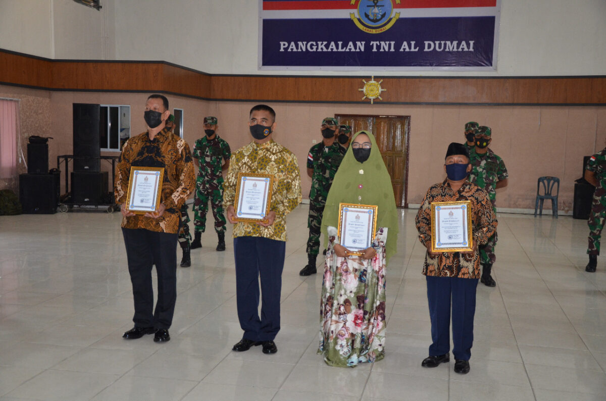 Sementara itu, pemberian tali asih secara simbolis diserahkan oleh Palaksa Lanal Dumai kepada 3 orang Prajurit dan 1 orang PNS yang memasuki masa purna tugas.