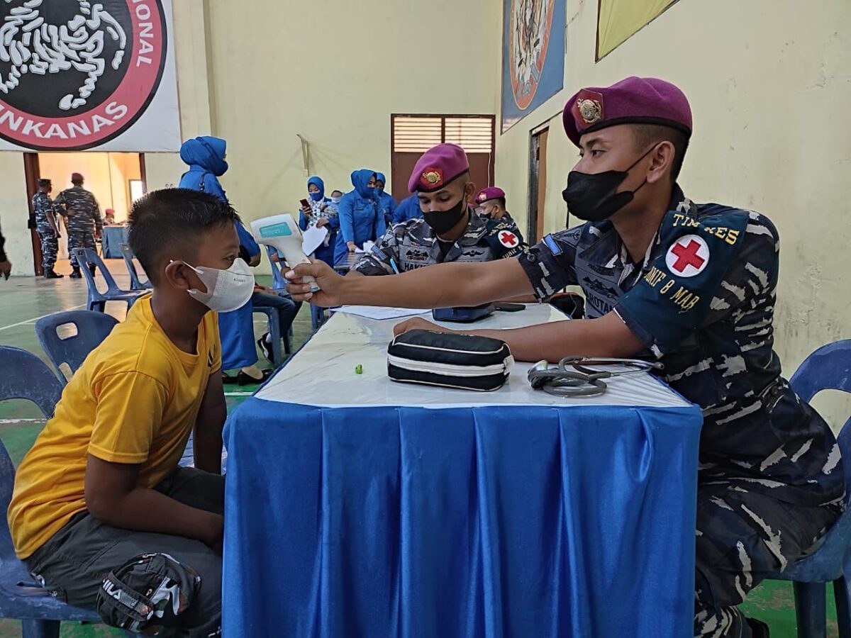 MediaPATRIOT.CO.ID – Belawan,- Guna mengimplementasikan perintah Kepala Staf Angkatan Laut (Kasal) Laksamana TNI Yudo Margono untuk mendukung program pemerintah dalam mempercepat vaksinasi di tanah air, tenaga kesehatan Pangkalan TNI Angkatan Laut (Lantamal) I kembali menggelar pelaksanaan serbuan vaksinasi di Markas Batalyon Infanteri 8/Harimau Putih Pangkalan Brandan, Kabupaten Langkat, Sumatera Utara, Rabu (30/03/2022).