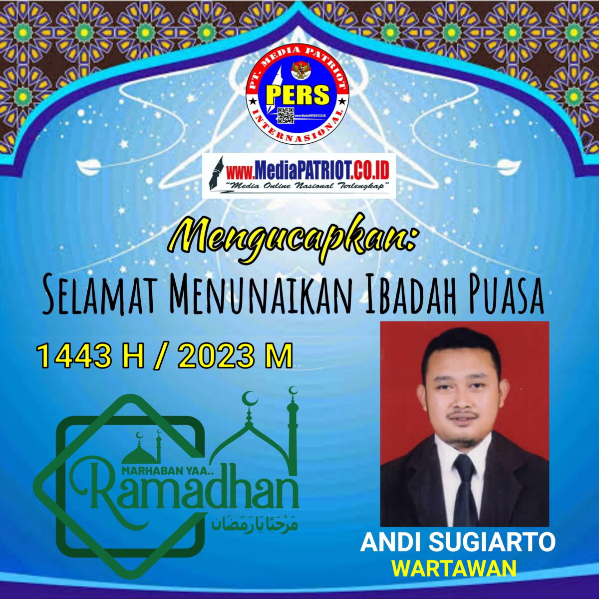 ANDI SUGIARTO Wartawan CIREBON – Media Online Nasional mediapatriot.co.id Mengucapkan Marhaban Ya Ramadhan 1443 H / 2022 M