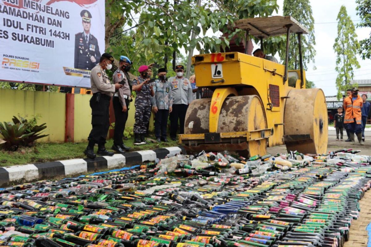 Kapolres Sukabumi AKBP Dedy Darmawansyah mengatakan dalam kegiatan pemusnahan ada 5103 botol Miras yang akan dimusnahkan dengan cara digilas menggunakan alat berat Stoom Walls.