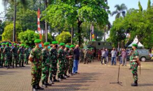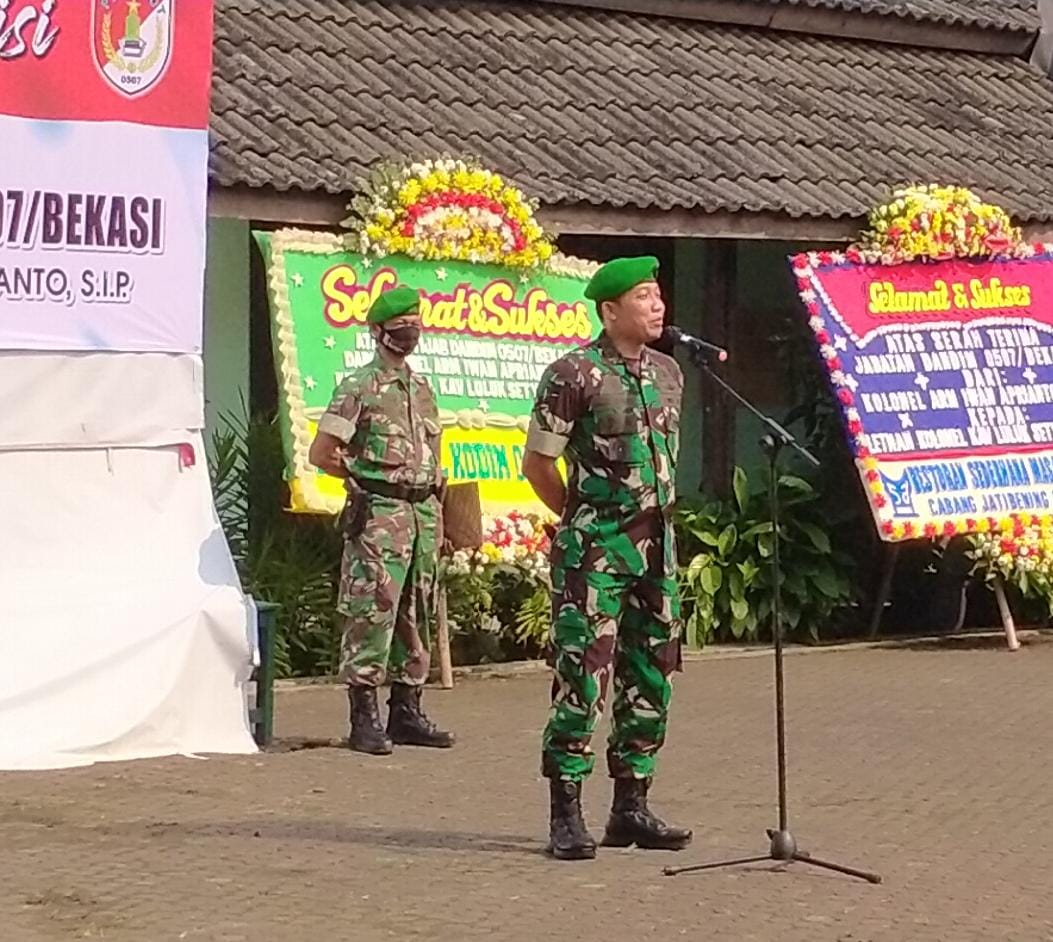 Tampak hadir dalam apel tersebut Kasdim 0507/Bks (Letkol Inf Hafes Isjafrin, SH), Pa Staf Dim 0507/Bks dan Danramil Jajaran Kodim 0507/Bekasi. (Sumber Pendim 0507/Bekasi).