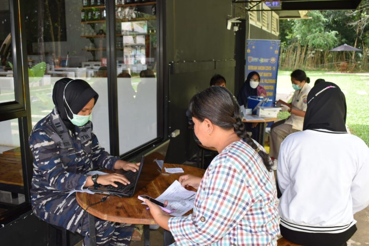 MEDIAPATRIOT.CO.ID – Palembang, 10 April 2022,– Balai Kesehatan Lanal Palembang mengerahkan 6 Nakes/Vaksinator yang dipimpin oleh Lettu Laut (K) dr. Meiyestri Dwi Riani Pjs. Kepala Balai Pengobatan Lanal Palembang menggelar aksi Vaksinasi dosis 1, 2 dan dosis lanjutan dengan sasaran berbagai lapisan masyarakat maritim Kota Palembang, dan dalam pelaksanaan Vaksinasi yang digelar di Balai Kesehatan Lanal Palembang dan juga secara mobile ini berhasil memberikan Vaksinasi kepada sebanyak 36 orang.