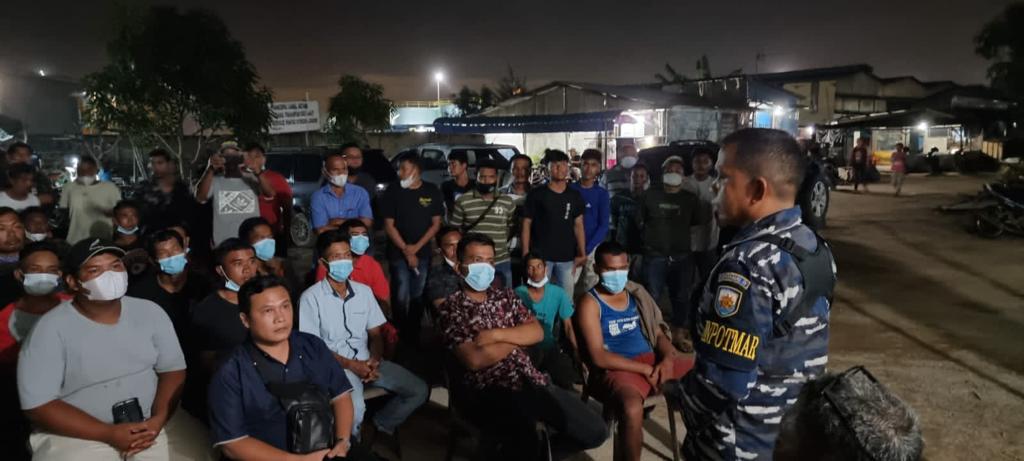 MEDIAPATRIOT.CO.ID – Batam,- Bertempat di Pos Pengamat Pantai Stres Jodoh, Babinpotmar Lanal Batam Peltu Eko Tandalir mengadakan Sosialisasi kepada Masyarakat Maritim Kawasan Pantai Stres sebanyak 63 (enam puluh tiga) orang terkait pekerjaan masyarakat sekitar sebagai pencari/pembeli besi tua pada kapal-kapal yang lego jangkar atau kapal yang sedang jalan di Perairan Batam/Selat Singapura. Sabtu (23/04/2022).
