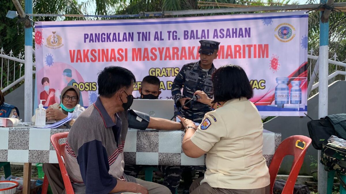 Tim nakes Lanal Tanjung Balai Asahan telah memvaksin sebanyak 24 orang dosis 3 Astrazeneca dan 3 orang dosis 2 Sinovac.
