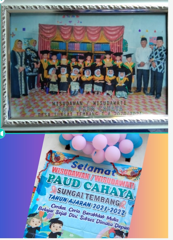 Paud/TK Cahaya melakukan wisudawan paud sebanyak 14 anak dan TK 12 anak, untuk anak-anak TK cahaya untuk selanjutnya melanjutkan pendidikan dasar (SD), karena anak anak ini tidak ada lagi waktunya untuk bermain tetapi berlajar . Kami berharap anak anak ini semakin tumbuh dewasa dengan ilmu yang kami didik selama di TK cahaya kata Sahril sebagai kepala sekolah TK Cahaya
