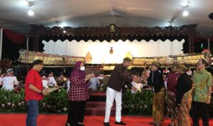 Tri Adhianto yang datang mengenakan batik dan blangkon berbincang akrab dengan dalang Ki Wahyudarma sebelum pementasan. Tri Adhianto menyebut, pentas wayang dengan Lakon yang digelar memiliki makna dan banyak pesan tersendiri.