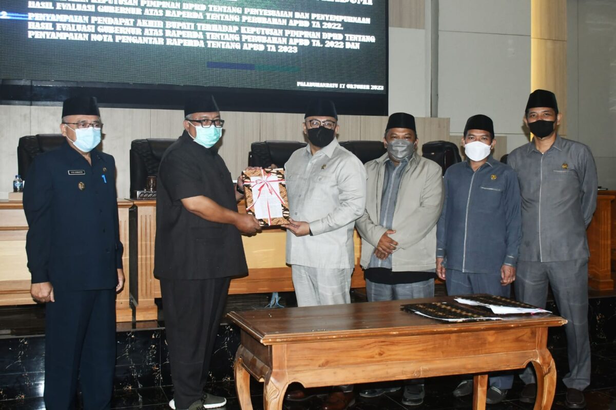 Dalam pengantar tertulis yang dibacakan Wakil Bupati Sukabumi H. Iyos Somantri, Bupati menyampaikan hasil evaluasi Gubernur telah dituangkan dalam keputusan Gubernur Jawa Barat Nomor 903/kep.610-bpkad/2022 tanggal 5 oktober 2022 tentang evaluasi Raperda Kabupaten Sukabumi tentang perubahan APBD tahun anggaran 2022 dan rancangan peraturan Bupati Sukabumi tentang penjabaran perubahan APBD tahun anggaran 2022, yang telah dibahas dan disepakati bersama antara Banggar DPRD dengan tim anggaran Pemerintah Daerah.