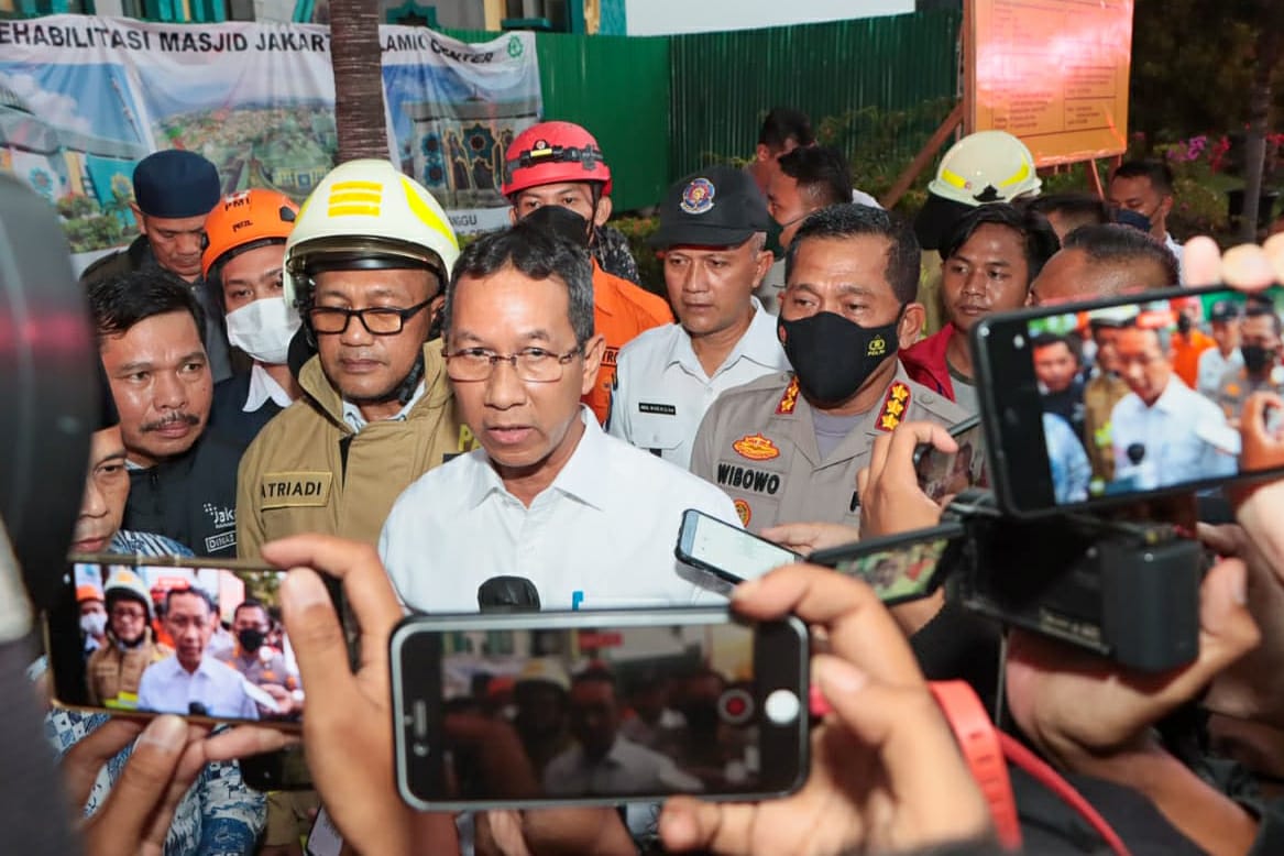 “Saya tadi mengecek. Objek kubah yang terbakar. Apinya sudah dilokalisir oleh Dinas Gulkarmat (Penanggulangan Kebakaran dan Penyelamatan) Provinsi DKI Jakarta,” kata Heru Budi Hartono saat ditemui di JIC, Koja, Jakarta Utara, Rabu (19/10).