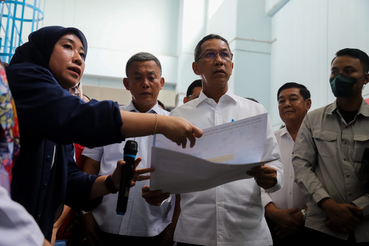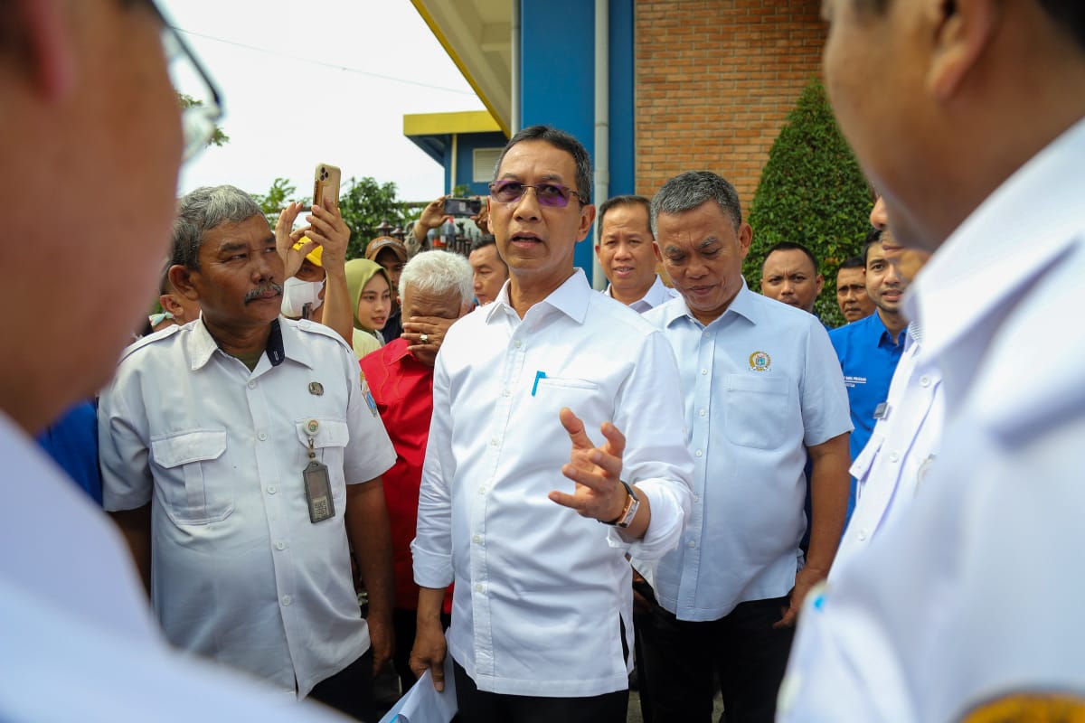 Jakarta, Penjabat (PJ) Gubernur Provinsi DKI Jakarta, Heru Budi Hartono bersama Ketua DPRD Provinsi DKI Jakarta, Prasetyo Edi Marsudi dan Walikota Kota Administrasi Jakarta Utara, Ali Maulana Hakim meninjau Rumah Pompa Waduk Pluit Sisi Timur, Kelurahan Penjaringan, Penjaringan, Jakarta Utara, Rabu (19/10).