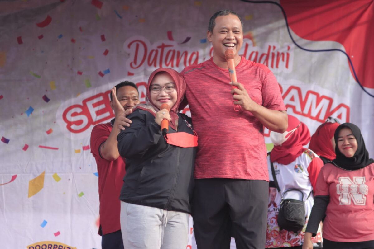 KOTA BEKASI – Plt. Wali Kota Bekasi Tri Adhianto dengan didampingi Ketua PKK Kota Bekasi Wiwiek Hargono manfaatkan akhir pekan dengan melakukan senam bersama warga masyarakat Bekasi Utara diarea lapangan Kecamatan Bekasi Utara, Sabtu (19/11).