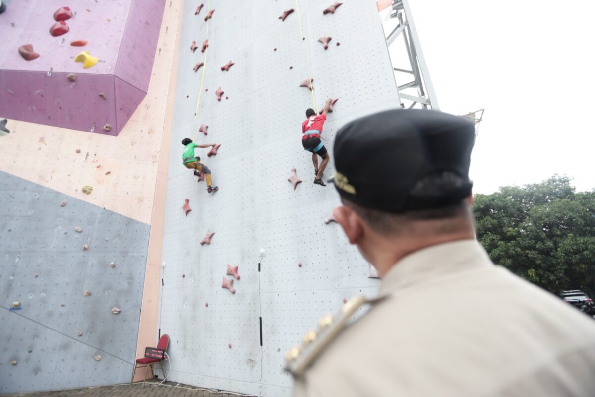 Jakarta , – Walikota Kota Administrasi Jakarta Utara, Ali Maulana Hakim membuka perlombaan panjat tebing di GOR Rawa Badak, Senin (26/12). Sebanyak 156 peserta panjat tebing mengikuti kejuaraan Sirkuit Panjat Tebing DKI Jakarta ke-2 tahun 2022.