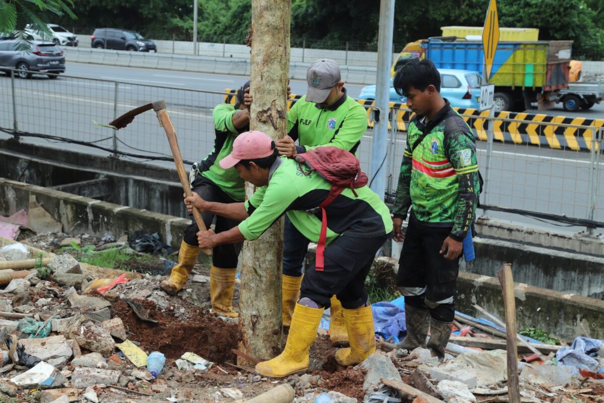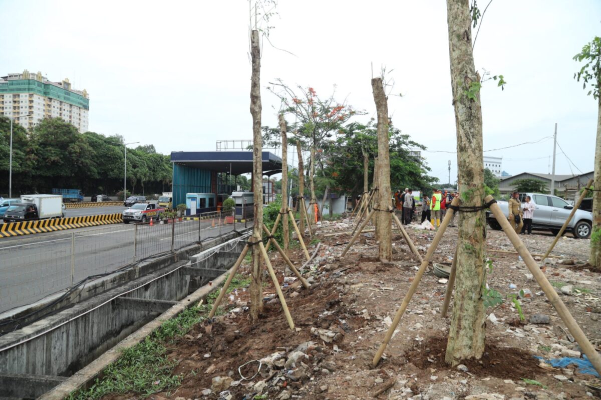 Salah satu titik lokasi penanaman pohon yakni di sisi Tol Prof. DR. Ir. Sedyatmo, Jalan Pluit Karang Karta 6, Kelurahan Pejagalan, Penjaringan, Jakarta Utara, Selasa (27/12).