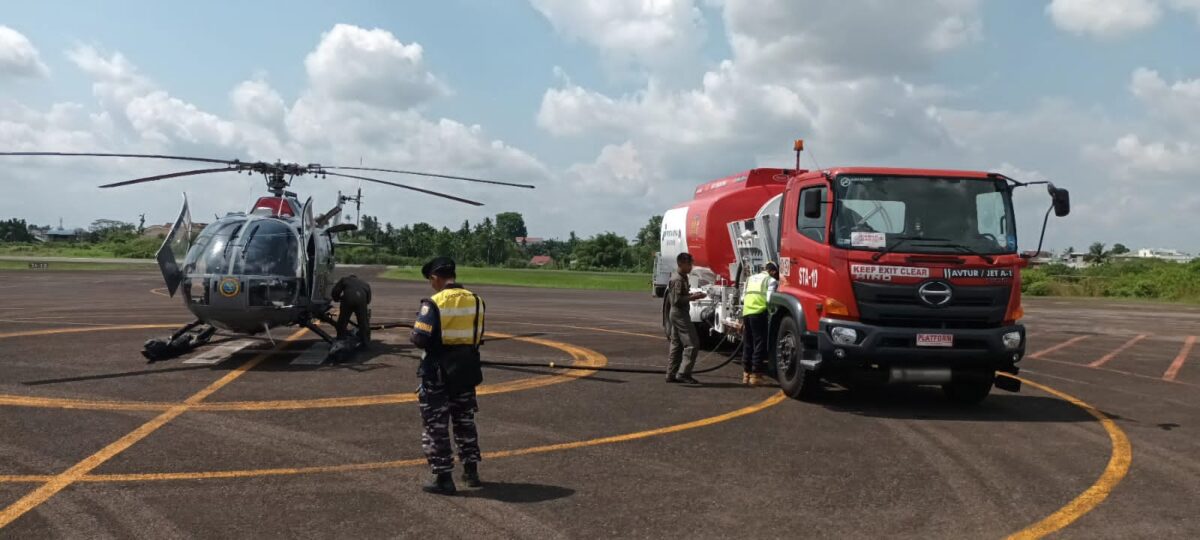 Pesud TNI AL, Helikopter BO-105 Bolkow HE-4108 Landing di Bandara Sultan Thaha Jambi Pukul 10.40 Wib, untuk selanjutnya melaksanakan refueling (pengisian bahan bakar) Jenis Avtur sebanyak 261 Liter.