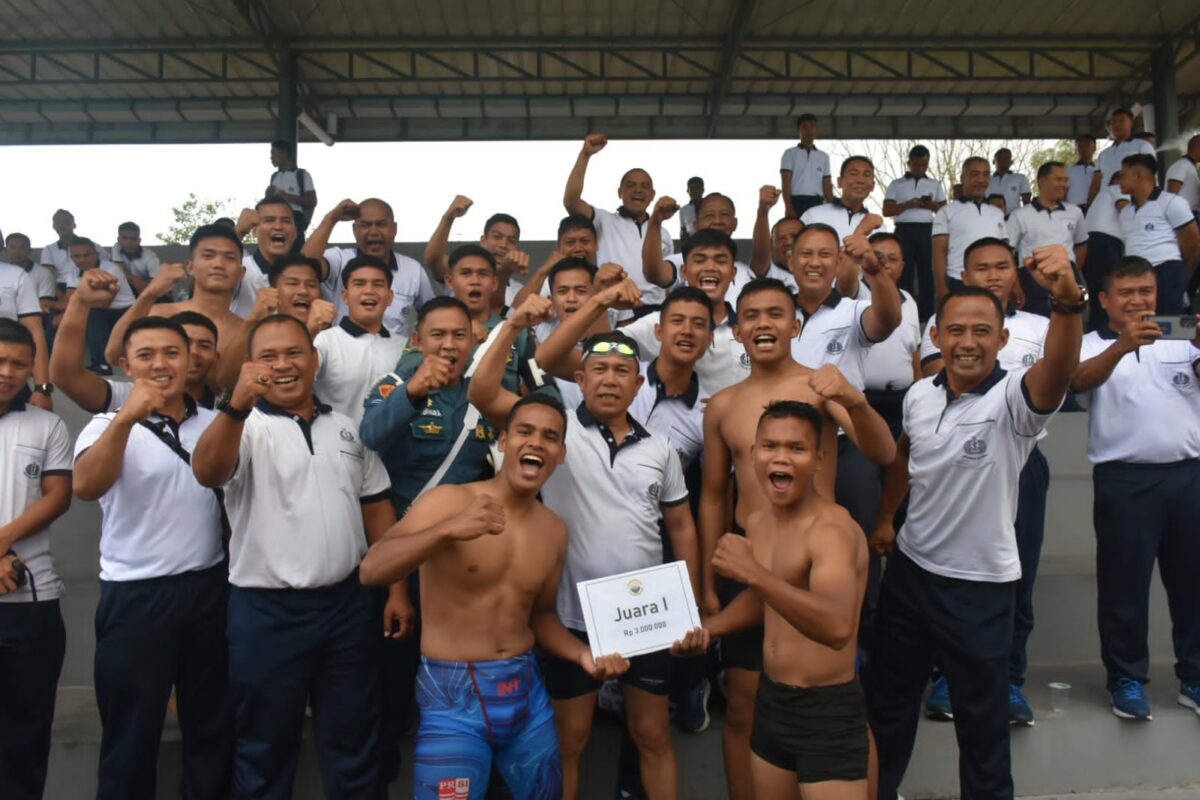 MEDIAPATRIOT.CO.ID – TNI AL, Bintan,- Personel Pangkalan TNI AL (Lanal) Bintan raih Juara 1 lomba renang estafet pada saat olahraga bersama jajaran TNI AL yang berada di Tanjung Uban, bertempat di Kolam Renang Tirto Sagoro 04 di Mentigi, Tanjung Uban, Jum’at (20/01/2023).