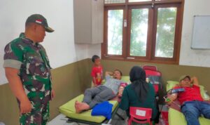 Jakarta- Kodim 0503/JB. Babinsa Kelurahan Rawabuaya Koramil04 Cengkareng Sertu Rital, membantu melaksanakan mengamankan kegiatan Donor Darah yang diselenggarakan oleh Warga sekitar bekerjasama dengan PMI Jakarta Barat, bertempat di Sekertariat RW. 03 Jl. H. Nimin RT. 11/03 Kel. Rawa Buaya Kec. Cengkareng Jakarta Barat. Sabtu (21/01/2023)