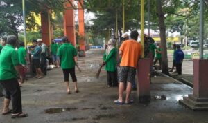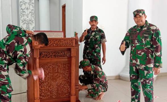 Karya Bakti masal membersihkan Mesjid Agung Ciparay dilaksanakan Danramil 2408/Ciparay Kapten Inf Aang Purtoni bersama jajaran, Rabu (22/02).