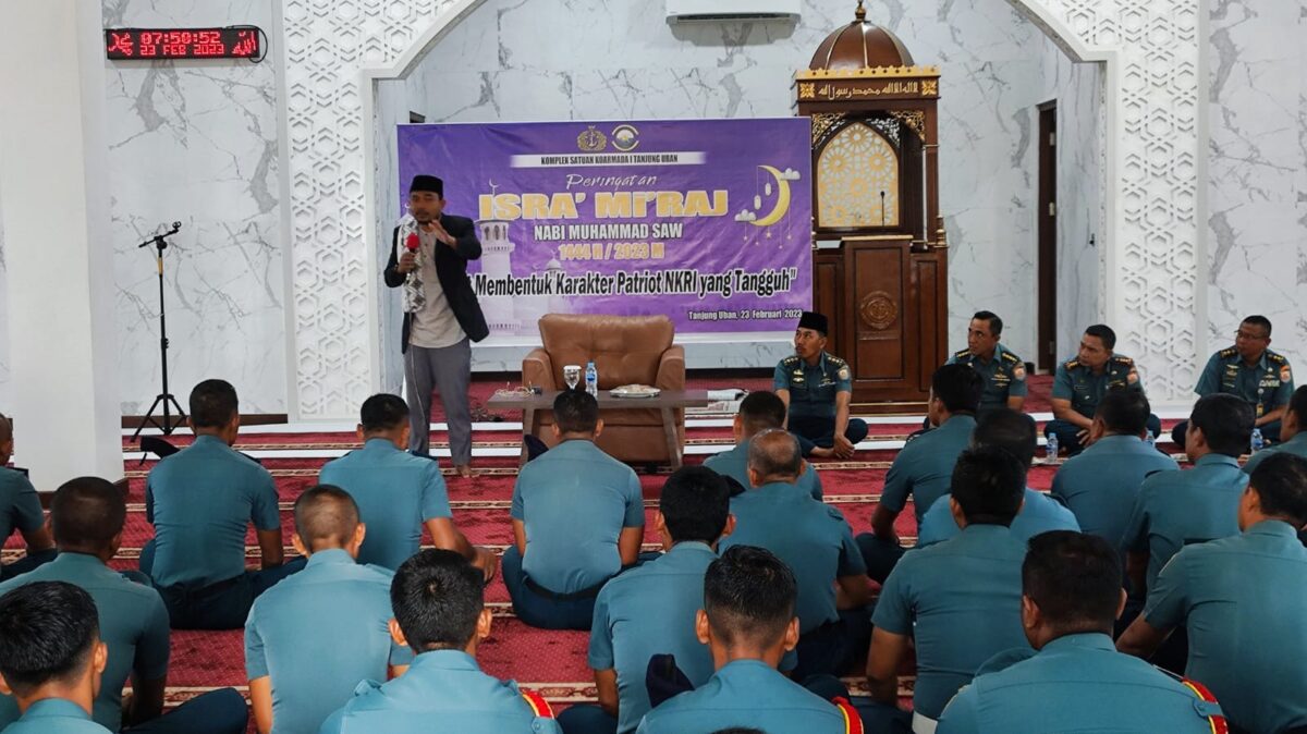 MEDIAPATRIOT.CO.ID – TNI AL, Bintan,- Pangkalan TNI Angkatan Laut Bintan melaksanakan Peringatan Isra Mi’raj Nabi Muhammad SAW Tahun 1444 H/2023 M yang diikuti perwakilan Satuan TNI AL yang ada di Tanjung Uban, bertempat di Masjid Al Ihsan, Komplek Satuan Koarmada I, Tanjung Uban, Kamis (23/02/2023).