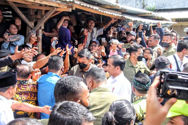 Dalam kunjungannya, Presiden juga membagikan paket sembako kepada pedagang dan masyarakat yang disambut dengan antusias.