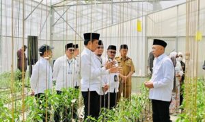 Peninjauan dimulai dari gudang penyortiran produk tani (Warehouse), area tanam, hingga rumah kaca (greenhouse) yang ditanami berbagai komoditas seperti jeruk Dekopon, melon, strawberi hingga sayuran hijau.