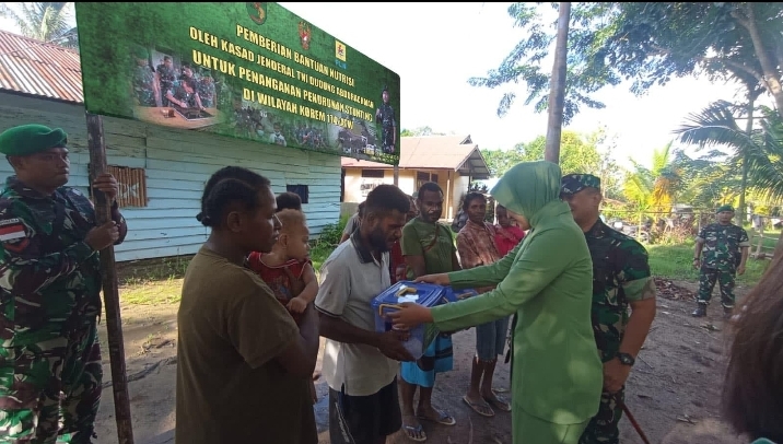 MEDIAPATRIOT.CO.ID – Merauke — Anak yang mengalami stunting di wilayah Korem 174 Merauke menerima bantuan tambahan gizi yang dibagikan oleh Danrem 174/ATW Brigjen TNI Agus Widodo, S.I.P., M.Si., bertempat di Kampung Kamangi, Distrik Tanah Miring, Kab. Merauke, Papua Selatan, Rabu (8/3/2023).