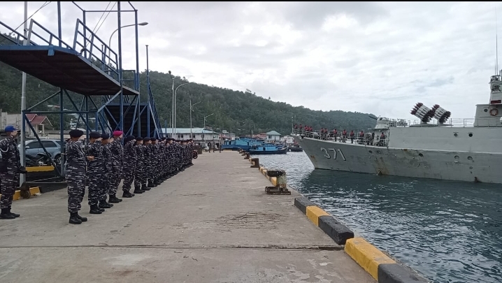 TNI AL, Lanal Tarempa,- Seluruh Prajurit Lanal Tarempa menyambut kedatangan Kapal Perang Republik Indonesia (KRI) Kapitan Patimura-371, kapal perang yang membawa Tim Bank Indonesia dalam rangka Ekspedisi Rupiah Berdaulat 2023 di Tarempa, Kabupaten Kepulauan Anambas., Kamis (09/03/2023).
