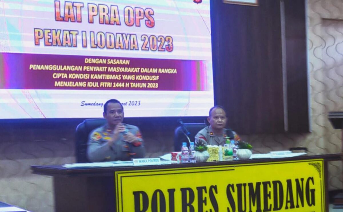 Kapolres Sumedang AKBP Indra Setiawan melalui Kasi Humas AKP Dedi Juhana saat ditemui pada pelaksanaan Lat Pra Ops di Aula Tribrata Polres Sumedang menyampaikan bahwa Ops Pekat Lodaya 2023 dilaksanakan guna menanggulangi penyakit masyarakat seperti perjudian, miras dan premanisme.