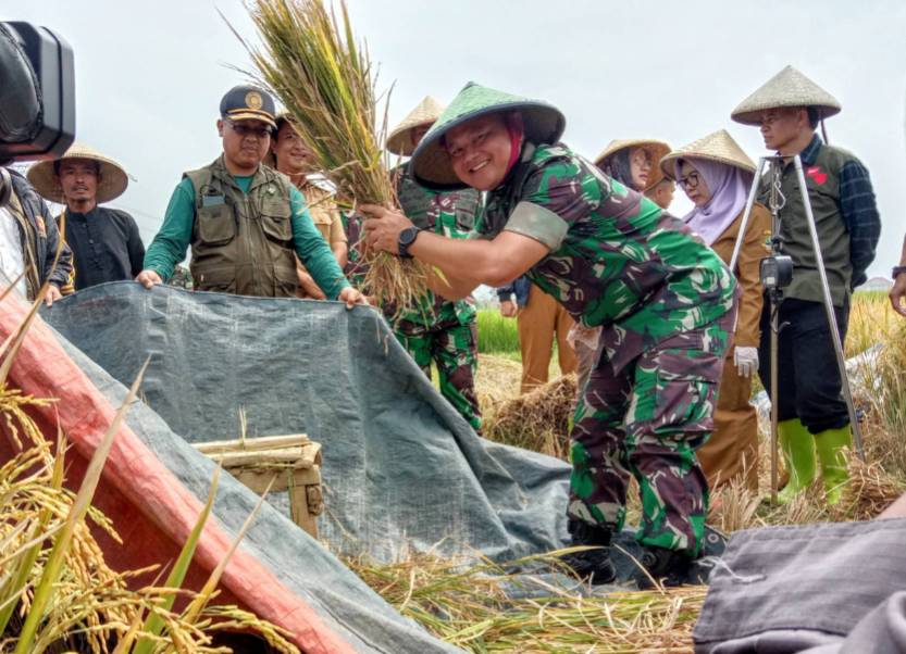 Dandim 0624/Kab Bandung Letkol Inf Hamzah Budi Susanto SE. M.I.P, melaksanakan panen raya di lahan milik H Sobur Ketua Poktan Mekarwangi di Desa Panenjoan Kecamatan Cicalengka, Senin (20/03).