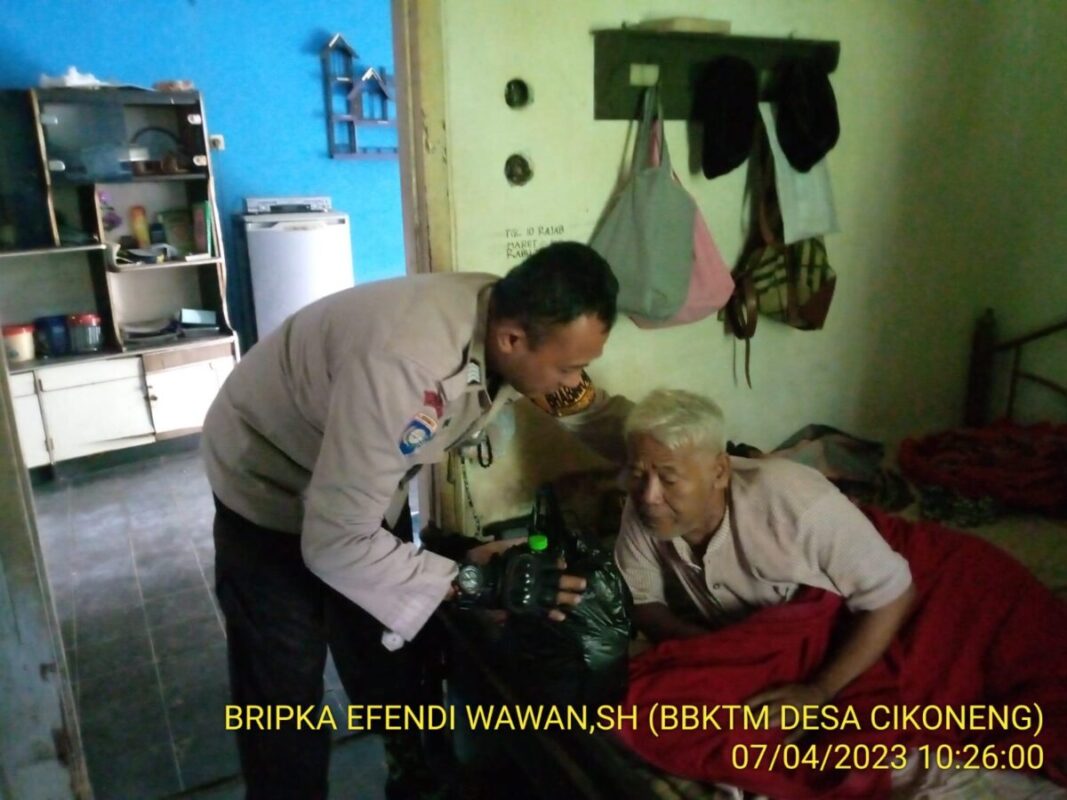 Sumedang, Media Patriot – Jum’at, (07/4) 2023, Bhabinkamtibmas Desa Cikoneng Bripka Efendi Wawan, S.H., melaksanakan Kegiatan Bakti Sosial dalam bentuk Kemanusiaan berbagi kebahagiaan kepada warga Masyarakat khususnya untuk Isar (68) tahun salah seorang warga Dusun Cikoneng RT 02 RW 03 Desa Cikoneng Kec. Ganeas, yang sedang sakit perkepanjangan (Lumpuh).