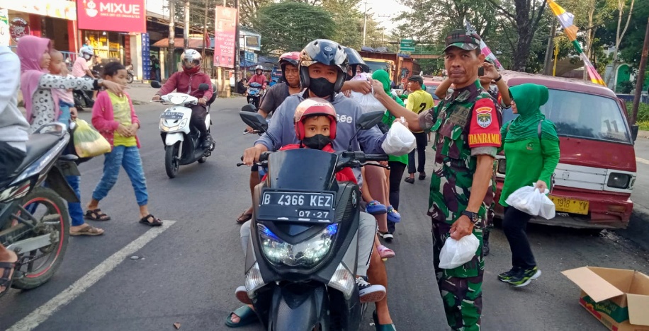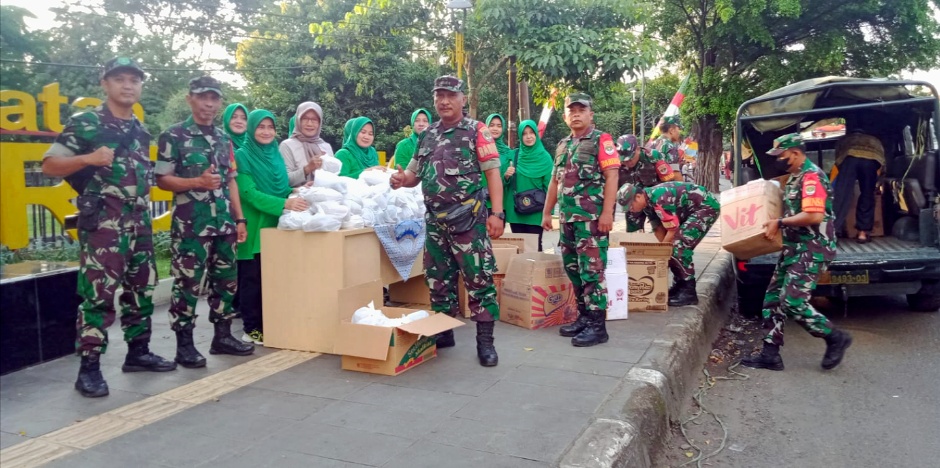 Kota Bekasi, MPN Memanfaatkan momentum Bulan Suci Ramadhan, para prajurit TNI dari Koramil 05/Bantargebang di bawah naungan Kodim 0507/BKS melakukan aksi kepedulian berupa pembagian takjil secara gratis, Minggu (9/4). Kegiatan ini dilaksanakan di Jalan Raya Narogong tepatnya di depan Kantor Kecamatan Bantargebang, Kota Bekasi, dengan sasaran para pengendara dan pejalan kaki yang melintas.