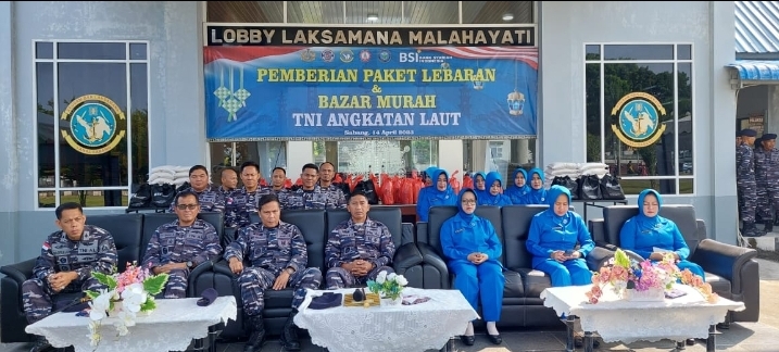 MEDIAPATRIOT.CO.ID – TNI AL, Sabang,- Menjelang Perayaan Idul Fitri 1 Syawal 1444 H/2023 M, TNI Angkatan Laut menggelar Pemberian Paket Lebaran dan Bazar Murah yang digelar secara serentak diseluruh Jajaran TNI AL yang terpusat di Gedung Auditorium Denma Mabesal, Cilangkap, Jakarta Timur, dipimpin oleh Kepala Staf Angkatan Laut (Kasal) Laksaman TNI Muhammad Ali, S.E., M.M., M.Tr. Opsla, melalui Video Conference, Jumat (14/4/2023).