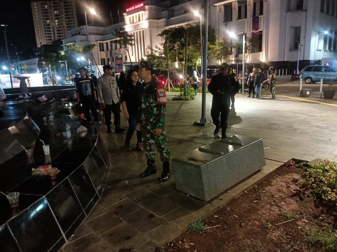 Kodam Jaya, Kodim 0503/JB – Kodam Jaya, Kodim 0503/JB – Sebanyak 26 personil gabungan Tiga Pilar yang mengikuti Patroli Cipta Kondisi setelah usai melaksanakan apel gabungan di Mapolsek Metro Tamansari Jalan Blustru, Kelurahan Mangga Besar, Kecamatan Tamansari Jakarta Barat. Minggu, (16/04).