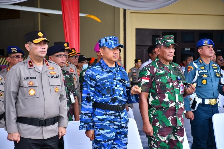 MEDIAPATRIOT.CO.ID – TNI AL, Lantamal XII,- Komandan Pangkalan Utama TNI Angkatan Laut (Danlantamal) XII beserta sejumlah personel Polisi Militer Angkatan Laut (Pomal) Lantamal XII menghadiri Apel Gelar Pasukan Operasi Kepolisian Terpusat “KETUPAT KAPUAS-2023” secara serentak di Lapangan Jananuraga Polda Kalbar, Jalan Jendral Ahmad Yani, Kelurahan Bangka Belitung, Kecamatan Pontianak Tenggara, Provinsi Kalimantan Barat, Senin (17/04/2023).