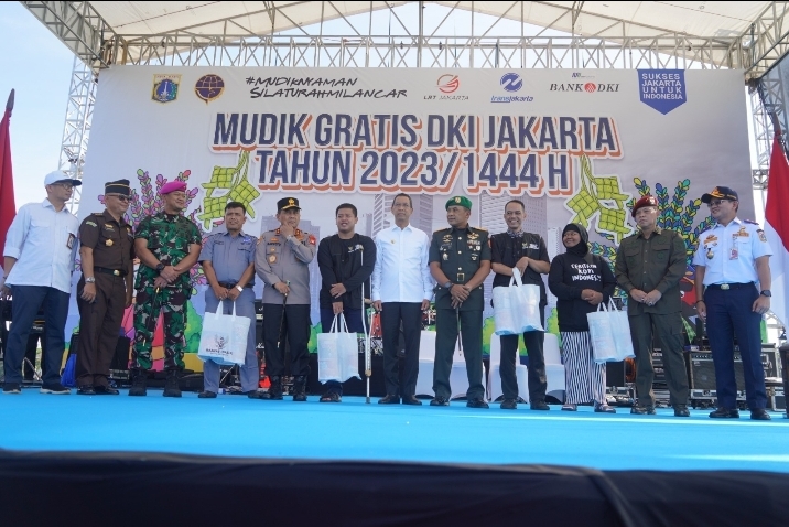 MEDIAPATRIOT.CO.ID – TNI AL-Dispenlantamal3. Komandan Lantamal III Jakarta Brigjen TNI (Mar) Harry Indarto, S.E., M.M., turut serta mendampingi Pejabat Gubernur DKI Jakarta Heru Budi Hartono beserta Forkopimda DKI Jakarta dalam pelepasan mudik gratis program Pemprov DKI Jakarta tahun 2023 bertempat di Monas, Jakarta Pusat, Senin (17/04/2023). Pada arus mudik hari ini, Pemprov DKI Jakarta memberangkatkan 284 bus dengan jumlah penumpang sebanyak 13.541 penumpang menuju 19 kota atau kabupaten di 6 provinsi yakni Sumatera Selatan, Lampung, Jawa Barat, Jawa Tengah, Daerah Istimewa Yogyakarta dan Jawa Timur. Tujuan program mudik gratis ini adalah agar masyarakat dapat melaksanakan mudik untuk merayakan lebaran di kampung halaman dengan aman, nyaman, dan sampai di tujuan dengan selamat.